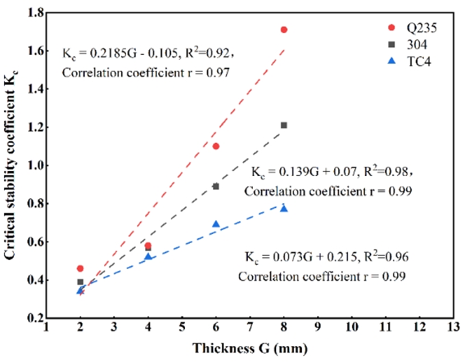 不同材料小孔临界稳定系数拟合曲线s