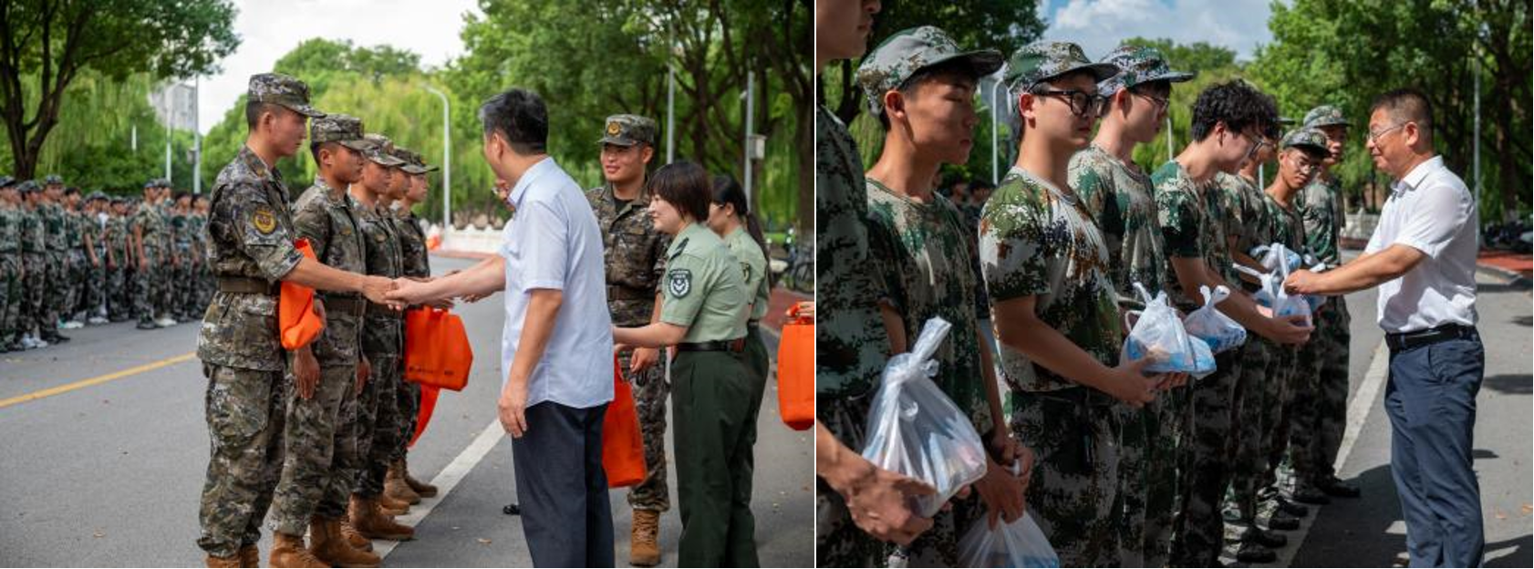 慰问结束后,学院老师们与五营的带训教官们交流并了解了同学们的训练情况。通过这次慰问,学院将清凉与关怀传递给每位辛苦训练的同学,驱散酷暑的疲劳。
