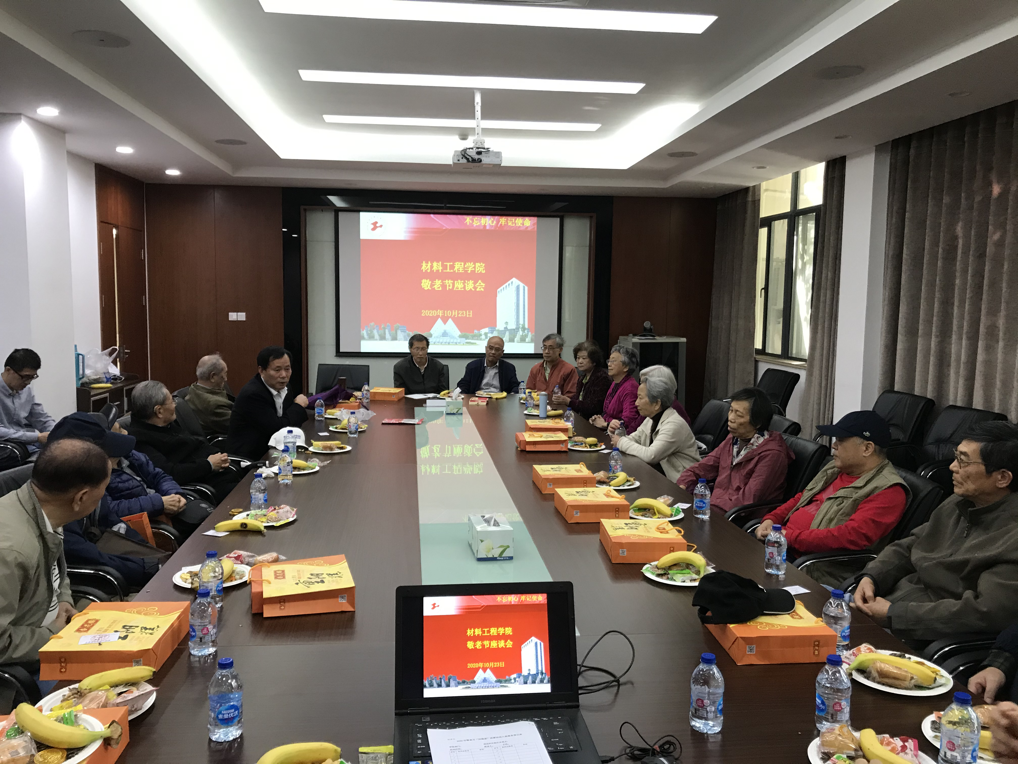 金秋十月,在庆祝新中国成立71周年的日子里,我们迎来了温馨的敬老节。今年是第33个敬老节,10月23日,材料工程学院在长宁校区教学楼103室举办了一年一度的敬老节活动。有20多位退休老教师参加活动,其中80岁以上有10位。活动由学院工会主席冷培榆主持。