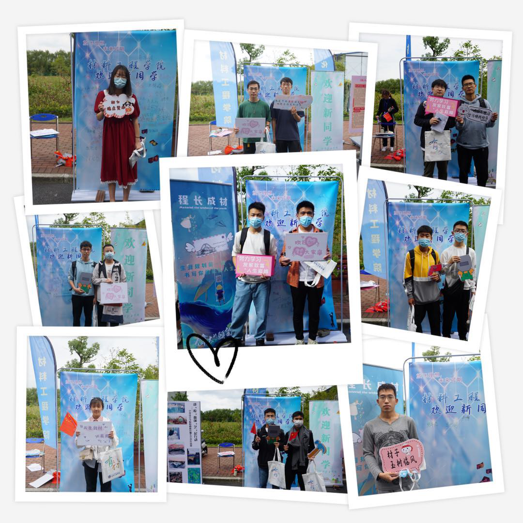 学院还在新生报到联络点特意设置了一面签名墙,萌新们纷纷在此郑重的签下自己的名字并合影留念,从此便是自豪的“材料人”!希望2020级新生们乘风破浪、未来可期,让青春在奋斗中焕发绚丽的光彩!