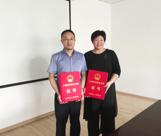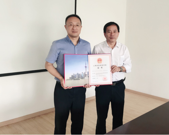会上,周细应院长将刚刚荣获的上海市科技进步奖的获奖证书转交给廖泽寰总经理。
