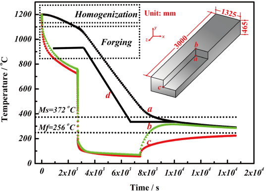 模具产业升级对模具材料的综合性能提出了更高要求,其中,大截面高性能模具钢材的稳定生产是制造大型模具型腔的必备条件,材料尺寸效应严重阻碍了常规固态相变规律在生产中的实施。因此,综合考虑大截面模具钢温度场、组织场和应力场的耦合作用成为稳定试制大截面高性能模具钢的技术关键。