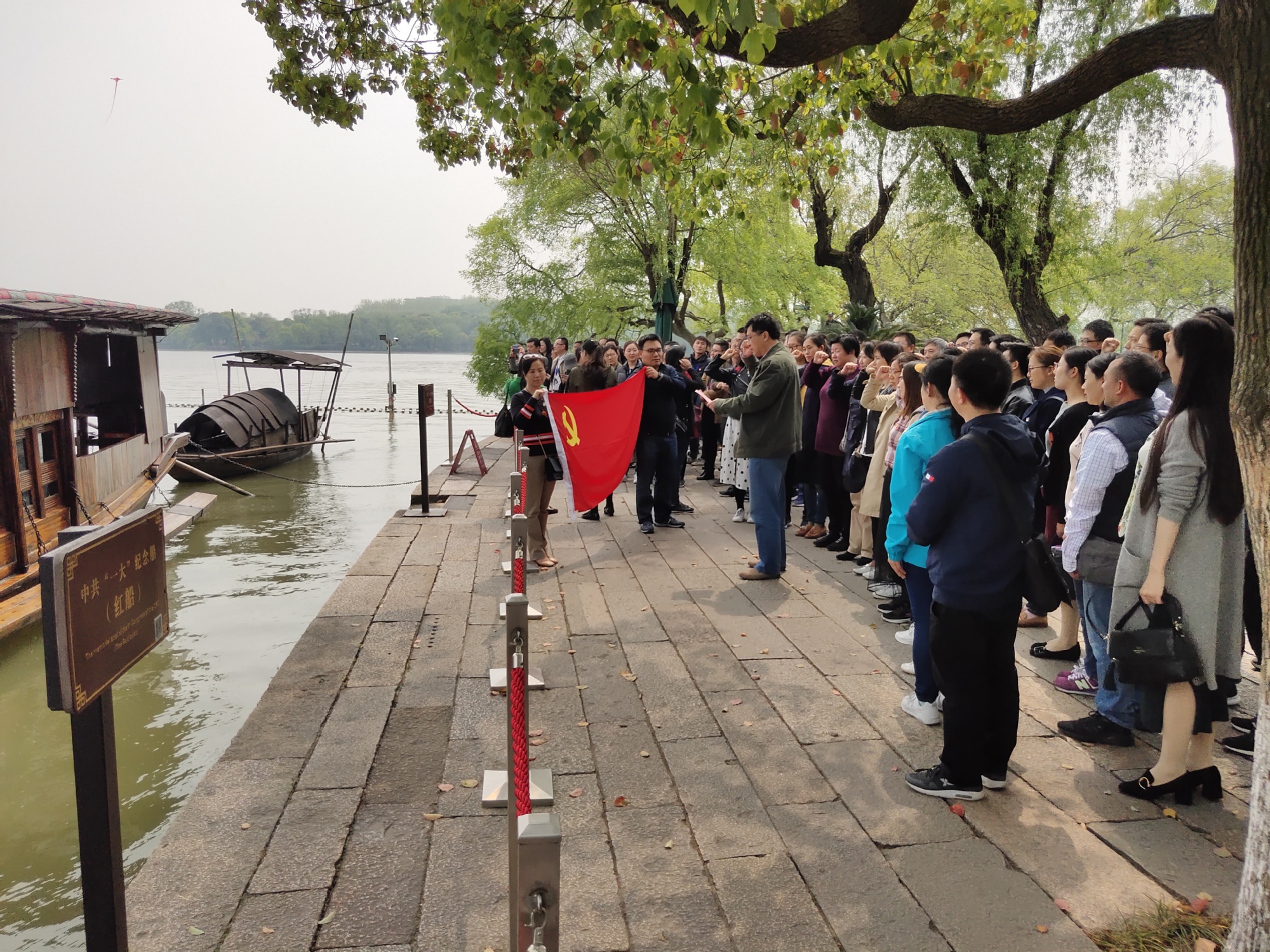 下午,全体教工们来到了象征中国革命源头的“红船”,它庄严宣告了中国共产党的诞生!党员们驻足红船边,学院党委书记于治水带领党员同志们一道举起右拳、庄严宣誓。“我志愿加入中国共产党,拥护党的纲领,遵守党的章程……”在这烟雨楼前,声音交汇在一起,一字一句,句句铿锵。
