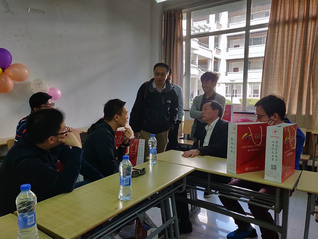 一场场别开生面的师生见面会在教学楼E106、E110举行。当阔别母校多年的校友再次踏上母校的土地时,看见学子们一张张青涩但坚毅的面庞,不禁感叹母校永远洋溢着青春的气息;当曾经无话不谈的同学们再次欢聚一堂的时候,他们喜笑颜开,细数往日校园的风趣往事;当曾经传道受业的老师与同学再次相遇时,他们思绪万千,感慨着时光的飞逝,感谢老师们的谆谆教诲。
