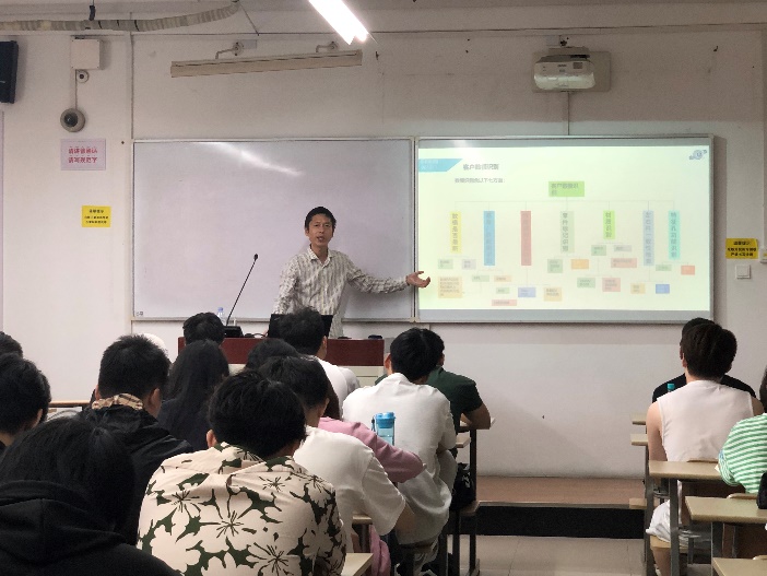 在授课中,解焕阳技术总监着重强调了专业知识的储备与个人素养提升的重要性,耐心地解答学生们对于企业环境和就业发展方向方面的疑惑,深化企业对学生在综合素质和专业技术方面的具体期望,为大家提供了切实可行的指导。