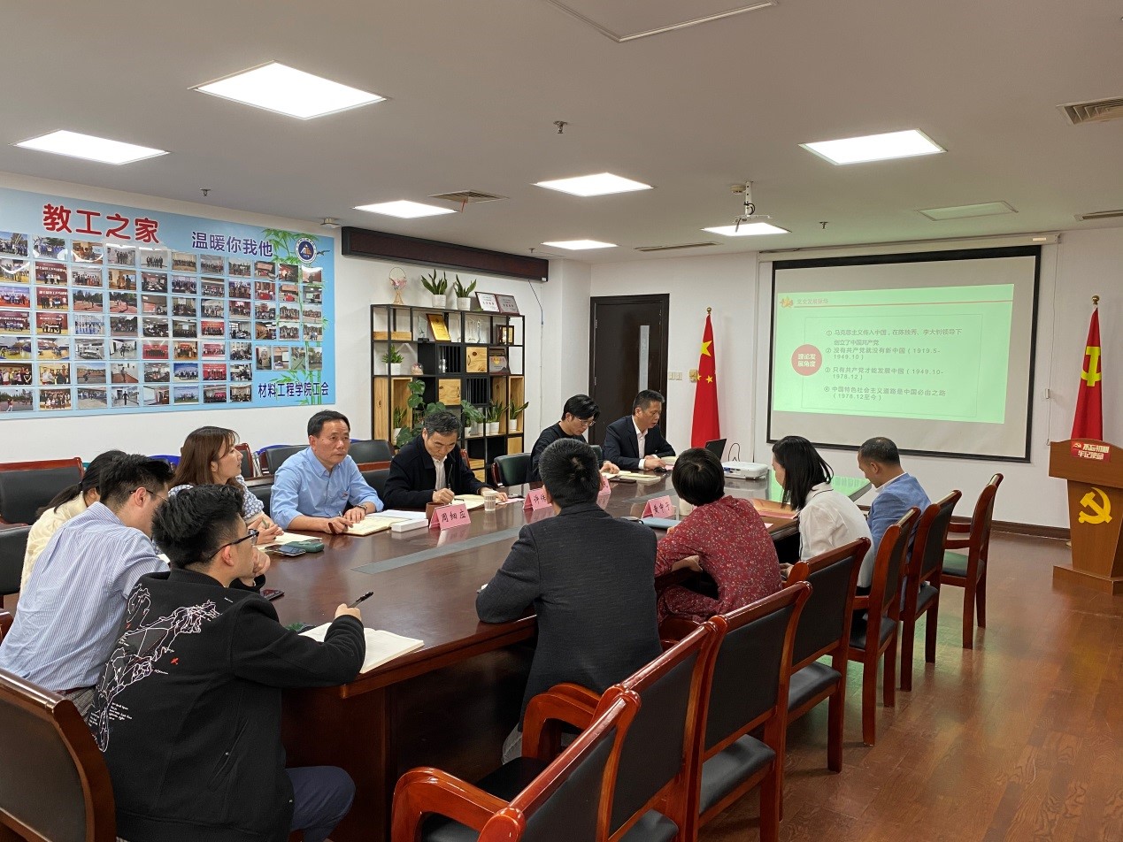 为深入推进党史学习教育,进一步学习习近平总书记关于中国共产党历史的重要论述,4月28日下午,材料工程学院党委在行政楼1611召开以《论中国共产党历史》为专题的集中学习研讨,马克思主义学院党总支书记许传宏特邀列席指导会议,学院班子成员、支部书记参加会议,会议由材料工程学院党委书记张朝民主持。