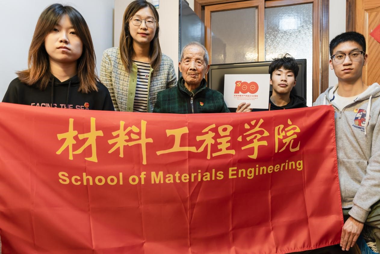 为庆祝建党百年,进一步扎实推进党史学习教育,4月28日,材料工程学院团委书记石玉枝带领学院百年初心寻访团党员、入党积极分子代表一行四人来到校离休干部贺庆仕老先生家中慰问寻访。