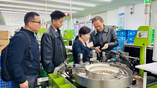 随后,学院一行参观了企业生产车间和技术研发中心,详细了解学生在岗实践情况。刘淑梅和袁建辉结合专业培养目标,对学生的实践内容进行了现场指导,并就岗位技能要求、工艺流程优化等与企业技术人员进行了交流。