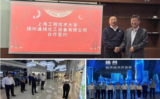 签约仪式前,与会人员共同参观了经开区展示馆与通扬化工生产车间,并围绕企业生产实际中的技术难题进行了深入交流,为后续合作明确了具体方向与重点攻关领域。此次战略合作标志着校企双方开启了共谋发展、助力产业强链升级的新篇章,未来将为G60科创走廊建设贡献重要力量。