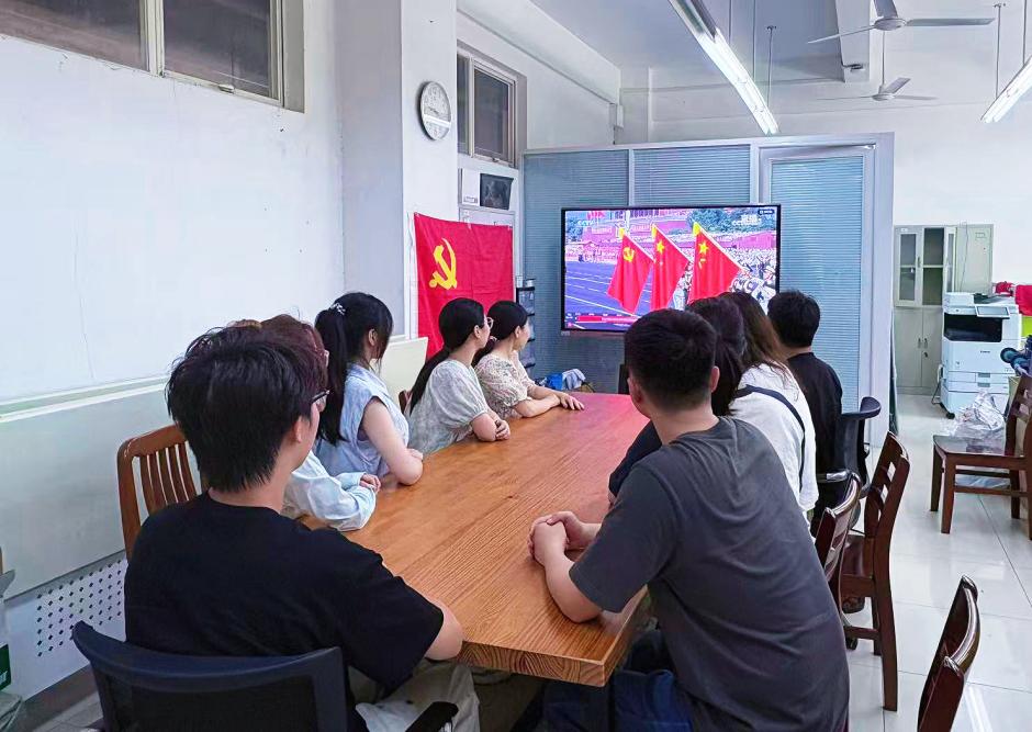 学院党委组织党员师生们集中收看纪念中国人民抗日战争暨世界反法西斯战争胜利80周年阅兵实况直播。