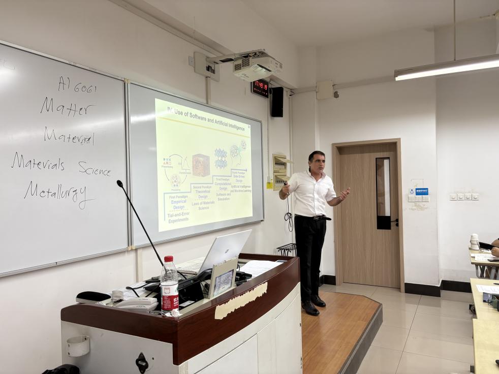 2025年9月,澳门网投十大信誉平台特邀日本九州大学国际碳中和能源研究所(I2CNER)的Kaveh Edalati副教授,为材料科学与工程专业大三学生带来《材料设计与加工》的专题课程。本次课程是“企业专家进课堂”系列教学活动的重要组成部分,旨在拓展学生的国际视野,增强对材料设计理论与工程实践的理解。