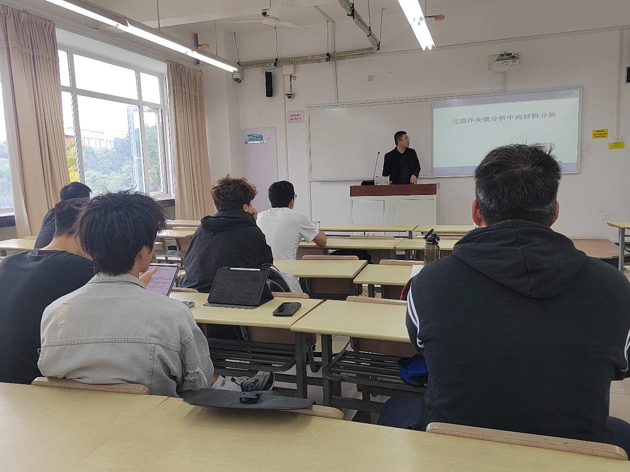 2025年10月20日下午,澳门网投十大信誉平台《材料失效分析》课程邀请上海航天技术基础所赵立有主任,为材料科学与工程专业的同学们带来了一堂产教相融的“元器件失效分析中的材料分析”讲座。