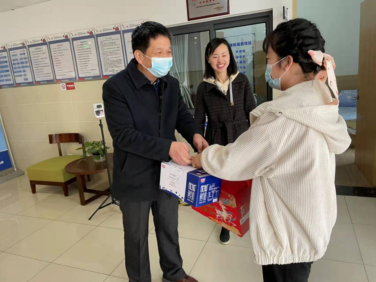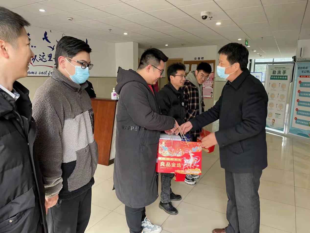 丑牛迈步辞旧岁,寅虎踏雪迎新春。农历新年来临之际,材料工程学院党委书记张朝民、副书记黄中子,辅导员沈园花和艾昕来到学生公寓看望并慰问假期留校的材料学子们。