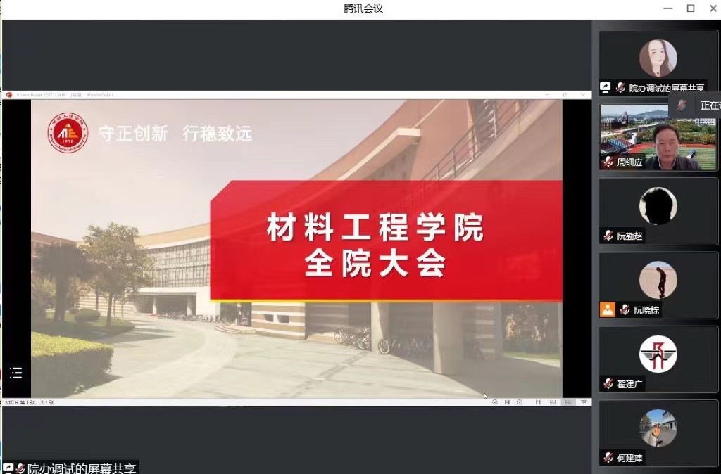 7月6日,材料工程学院在线召开全院大会,传达学校党委关于巡视“回头看”整改工作会议的精神和巡视整改工作部署,学院党政班子成员、系室主任和全体教职工参加会议。会议由学院党委副书记、院长周细应主持会议。