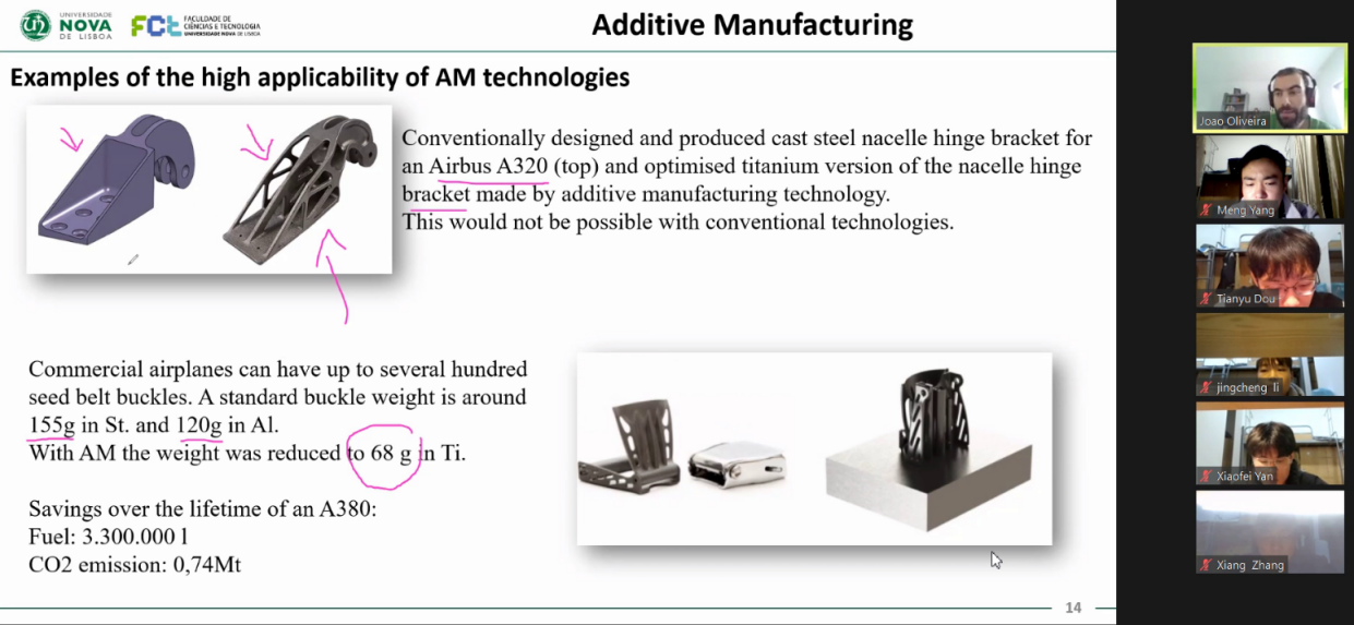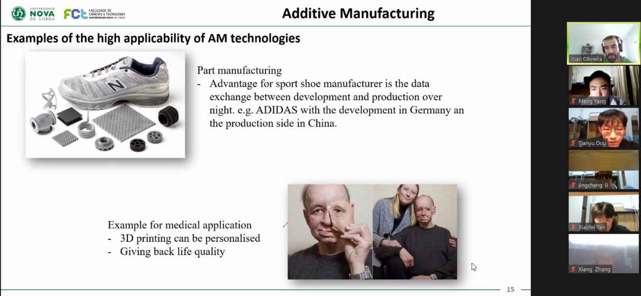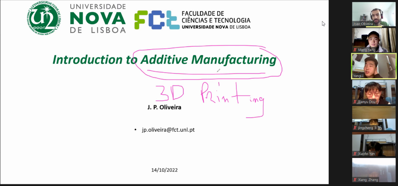 2022年12月4日,葡萄牙新里斯本大学Joao教授受邀为我院学生开展了一门“增材制造”讲座。课程由Joao教授英文主讲,杨瑾副教授中文辅讲。我院学生踊跃参与到课程的学习。