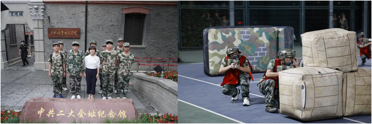 身着迷彩戎装,淬炼刚毅青春。为了解革命历史,增强爱国情怀,军训学生身穿迷彩服,走进革命圣地,重温建党伟业,沉浸式感受革命精神。学生们怀着憧憬的心情开启红色研学之旅,寻访红色地标,重走红色之路,聆听红色故事,赓续红色精神。通过回顾中国共产党发展壮大的光荣历史,学生们加深对党的革命精神和优良传统的理解和认识,接受一次深刻的党性教育。研学后,学生们以必胜的信念投入到激烈的真人CS对抗赛,在“实战”中锤炼奋斗精神!