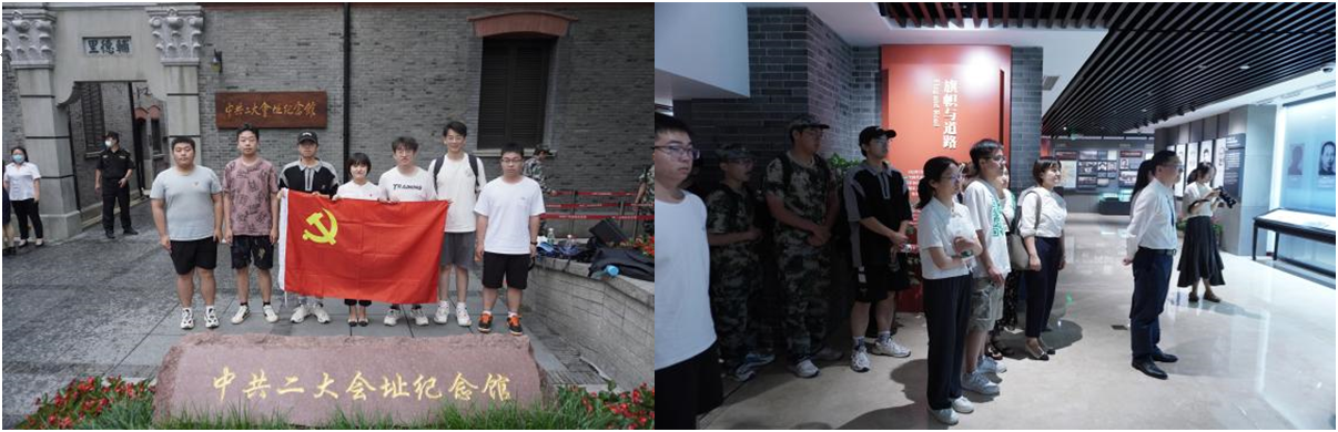 不忘来时初心,立志扬帆远航。在中共二大会址纪念馆序厅,学院副书记刘倩带领大家面向党旗,庄严宣誓,重温入党誓词。优秀毕业生党员徐文虎、罗钟毅结合自己研究生的学习、科研、生活、社会实践等对学校和学院的培养表达了感激之情,并表示不忘入党初心,在走向社会、踏上新的星辰大海之际,永葆初心,书写面对“时代之问”的“青年答卷”。