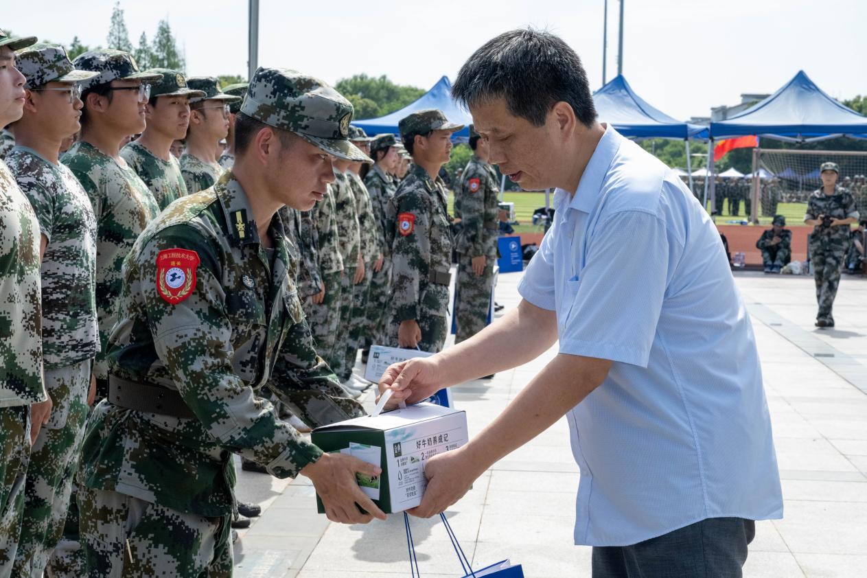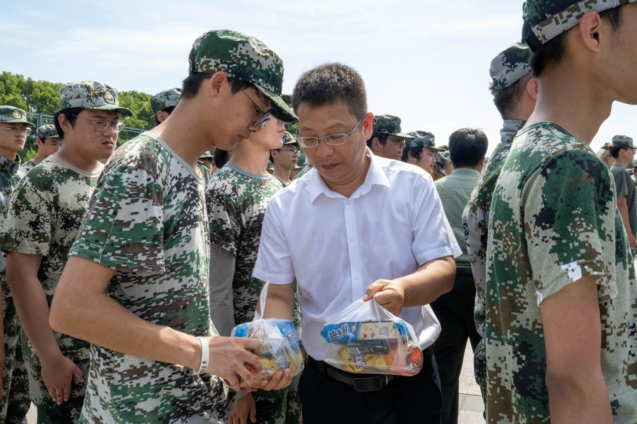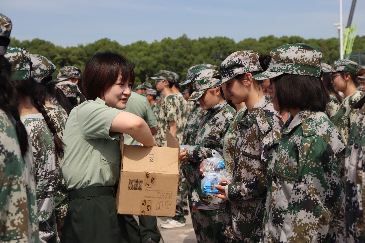 最后,张朝民书记、李军院长和刘倩副书记为全体军训教官和学生发放慰问品。此次慰问活动体现了院领导对军训工作的高度重视,让同学们感受到了来自学院的温暖,肯定了同学们展现出的昂扬斗志,并激励大家在之后的训练中再接再厉,以更饱满的热情完成接下来的军训任务。